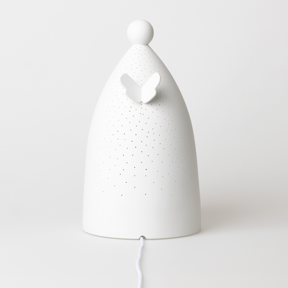 unglasiertes Porzellan mit Lochmuster, Stromanschluß notwendig, Leuchtmittel nicht im Lieferumfang enthalten (E14-Fassung)