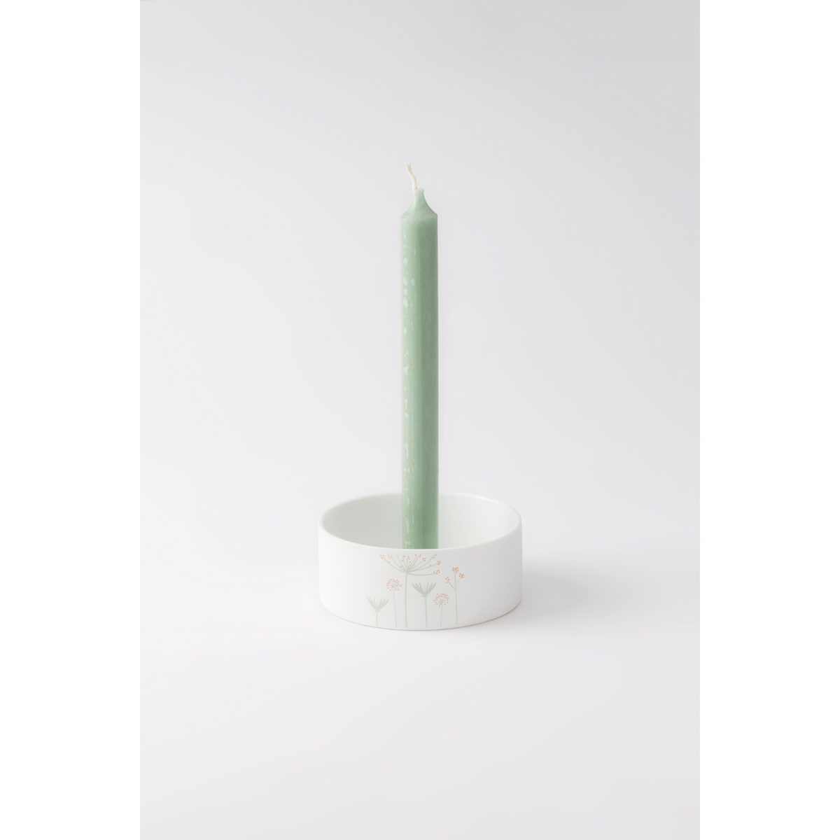 hübscher und frühlingshaft dekorierter Porzellankranz für eine Stabkerze, in Pastellfarben gestaltet